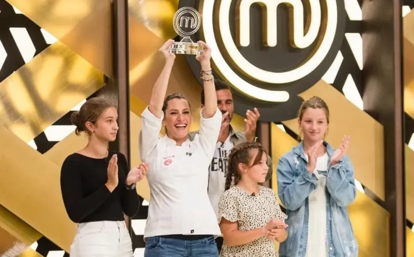 La marplatense se enfrentó a Tomás Fonzi en la gran final de la tercera edición de Masterchef Celebrity Argentina, luego de 22 semanas de reality en el que pasaron 19 famosos. Luego de un intenso enfrentamiento en las cocinas el domingo, Mica Viciconte levantó el trofeo junto a su familia con el ex futbolista, Fabián Cubero, y sus hijas con Nicole Neumann, Sienna, Indiana y Allegra.