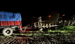 Siniestro Vial. Volcó un camión con acoplado que transportaba semillas: el conductor salió ileso