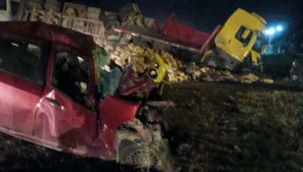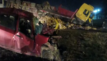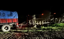 Siniestro Vial. Volcó un camión con acoplado que transportaba semillas: el conductor salió ileso