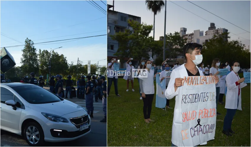 La tensión aumentaba ya que los médicos querían manifestarse y el vallado policial lo impedía. "Ellos tienen ordenes de impedir la movilización en grupo. Nos encerraron por todos lados como si fuera un corral de oveja, ahora van a abrir la circulación para que podamos salir. Esto es una vergüenza", dijo la directora de la Gremial Médica Azucena Gallard.