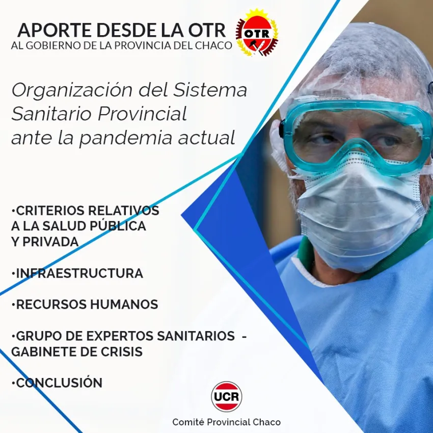 Al respecto, el presidente del Comité Provincial de la UCR, Livio Gutierrez, señaló "es un trabajo que vienen realizando decenas de trabajadores de salud de manera interdisciplinarios de toda la provincia integrantes del partido, coordinado a través de la Organización de Trabajadores Radicales (OTR) y que fue puesto a consideración por el Comité Provincial y a la Mesa Ejecutiva de la Convención", aclarando en este sentido que "este documento es el segundo de este tipo, ya que se emitió un documento similar hace un mes donde se dieron recomendaciones en materia de salud pública y privada, que más allá de que no son recepcionadas por parte del Gobierno Provincial, entendemos que tenemos que decirle a la ciudadanía del Chaco que estas medidas pueden ser útiles para combatir la pandemia que nos aqueja".