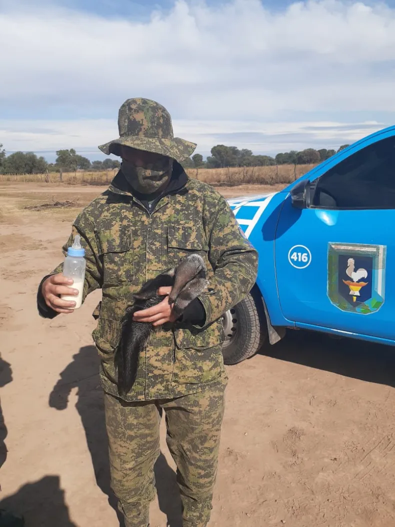 Este lunes a la siesta, un cachorro de oso hormiguero fue rescatado de una casa del barrio Sur de Pampa del Infierno y fue llevado al Complejo Ecológico de Presidencia Roque Sáenz Peña.