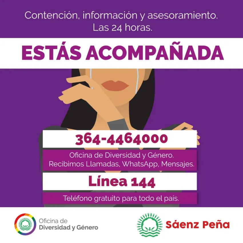 La Oficina de Diversidad y Género posee un número para quienes necesiten información, contención y asesoramiento las 24 horas del día, podrán hacerlo mediante llamadas o mensajes vía Whatsaap al número 364-4464000 o bien al número de línea 144, que es gratuito para todo el país.