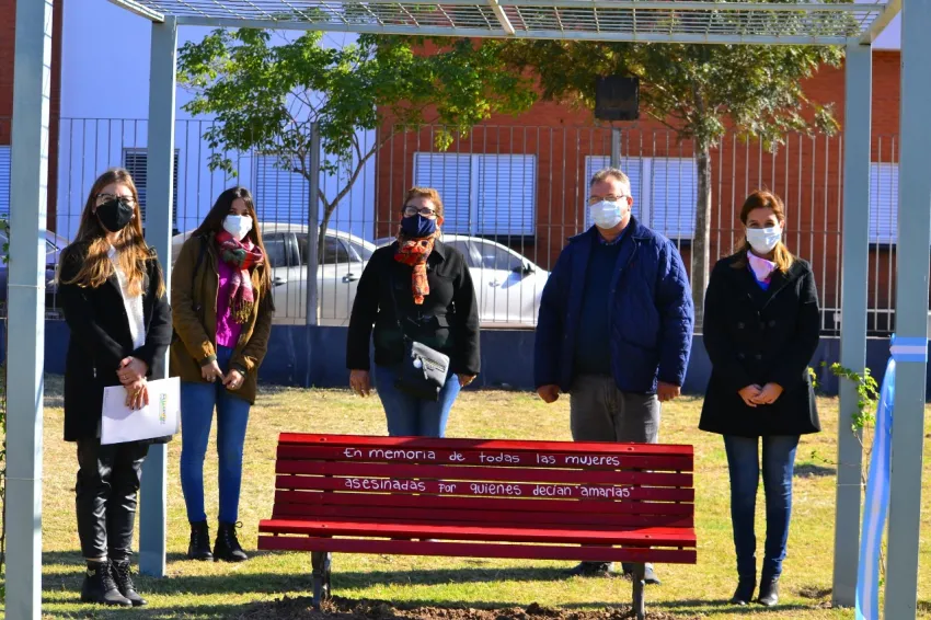 La inauguración se llevó adelante con un sencillo acto sin público oportunidad en la que la Presidenta del Concejo Deliberante hizo entrega de una Ordenanza a la Subsecretaria de Igualdad y Género y a la Secretaria de Obras Públicas a través de la cual el Municipio adhiere a la Ley que establece la imposición de "Banco Rojo" con su leyenda.