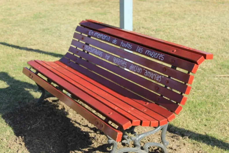 Dicho banco se emplazó en el paseo de la Mujer, con la leyenda "En memoria de todas las mujeres asesinadas por quienes decían amarlas".