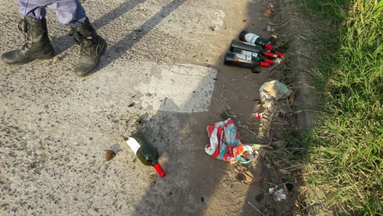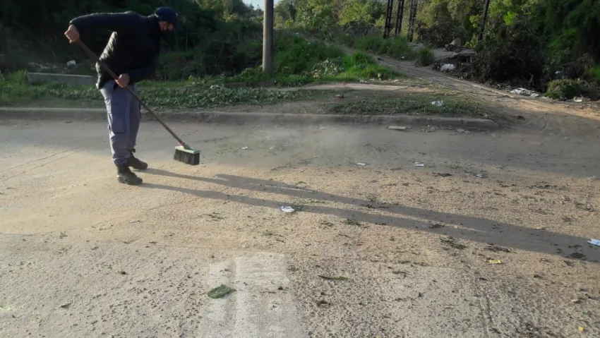 Al corroborar la situación, y teniendo en cuenta que las botellas y vidrios rotos impedían el tránsito, los agentes comenzaron a barrer el lugar.