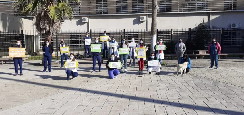 "Como residentes del Hospital 4 de Junio nos estamos manifestando para que se mejore la situación laboral en la que estamos trabajando. Somos todos residentes que trabajamos percibiendo una beca nada más", señalaron.