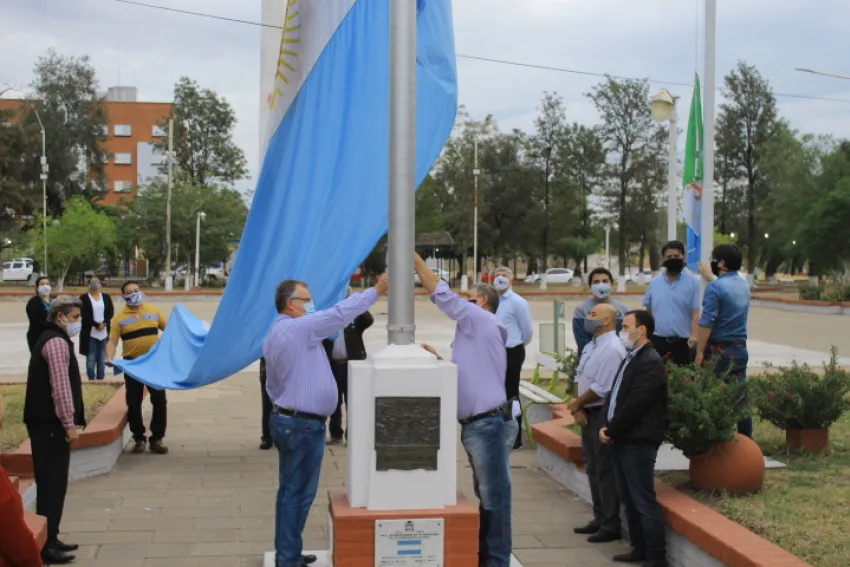 El Municipio de Castelli inició la jornada conmemorando la fecha establecida en el año 1973 a través de un acto encabezado por el intendente Pio Sander junto a funcionarios de su gabinete, la presidenta del Concejo, concejales y ex combatientes de Malvinas, realizaron el izamiento de pabellones nacional, provincial y municipal.