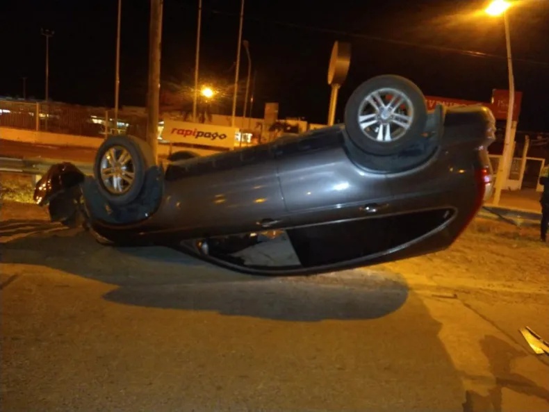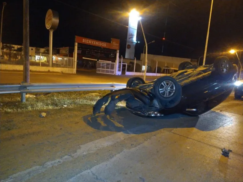 Este domingo a la madrugada, un adolescente de 17 años perdió el control de su auto y volcó en la rotonda de la Ruta Nacional N°16 y la avenida Sabín.