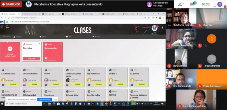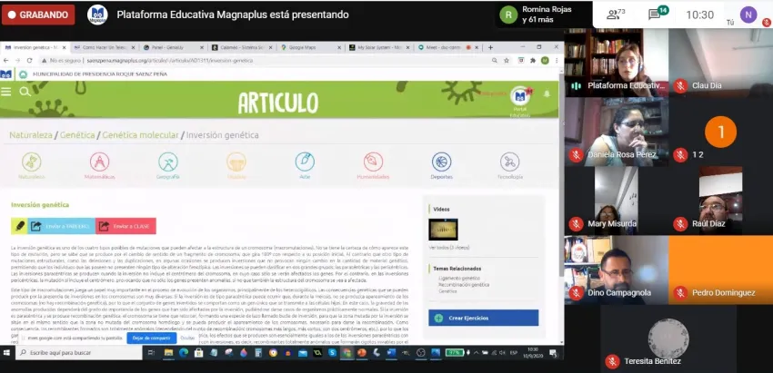 En el marco de la capacitación que se brinda a los docentes para la creación de clases, fines y objetivos, contenidos pedagógicos, entre otras funcionalidades, se llevó a cabo una reunión online entre los diferentes actores de la Educación de la ciudad.