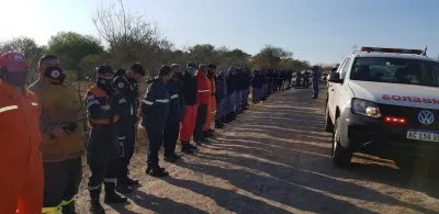Alrededor de las 8:00, los agentes iniciaron el operativo con rastrillajes con la intervención de varias unidades policiales entre las que se encontraban la División Bomberos y División Canes, quienes se desplegaron a pie por zonas de monte.