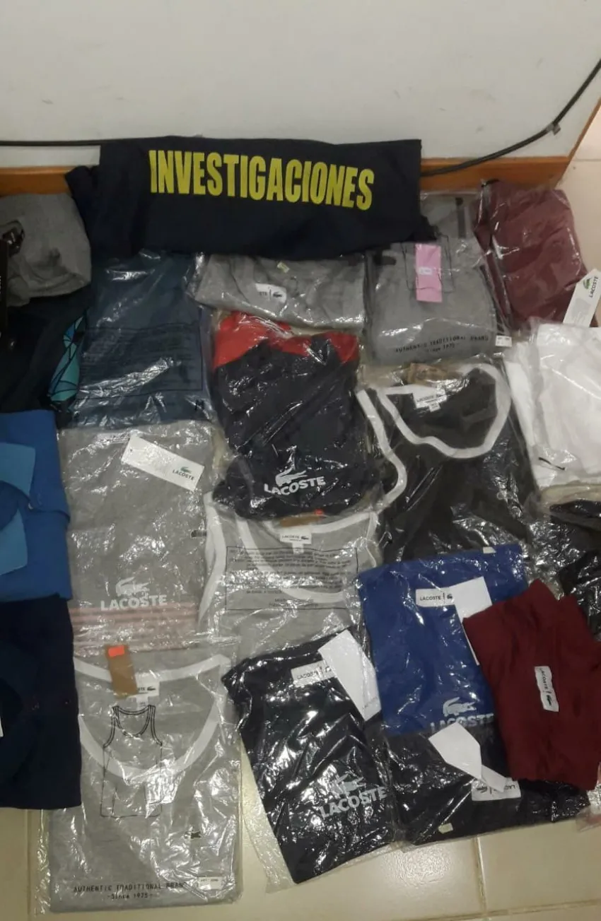 Del lugar secuestraron 6 musculosas de hombres de distintos talles y marcas, cuatro chombas de hombre y 12 remeras de hombre y mujer también de distintos talles y marcas.