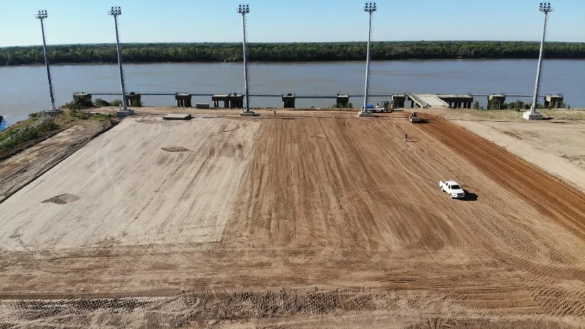 El Gobierno informa que Vialidad Provincial está progresando a buen ritmo con los trabajos correspondientes a la construcción de obra básica (relleno y compactación) en el playón de cargas del Puerto Las Palmas, como parte inicial de la obra de acceso que se iniciará en los próximos meses en este sector del Departamento Bermejo, en el noreste provincial.