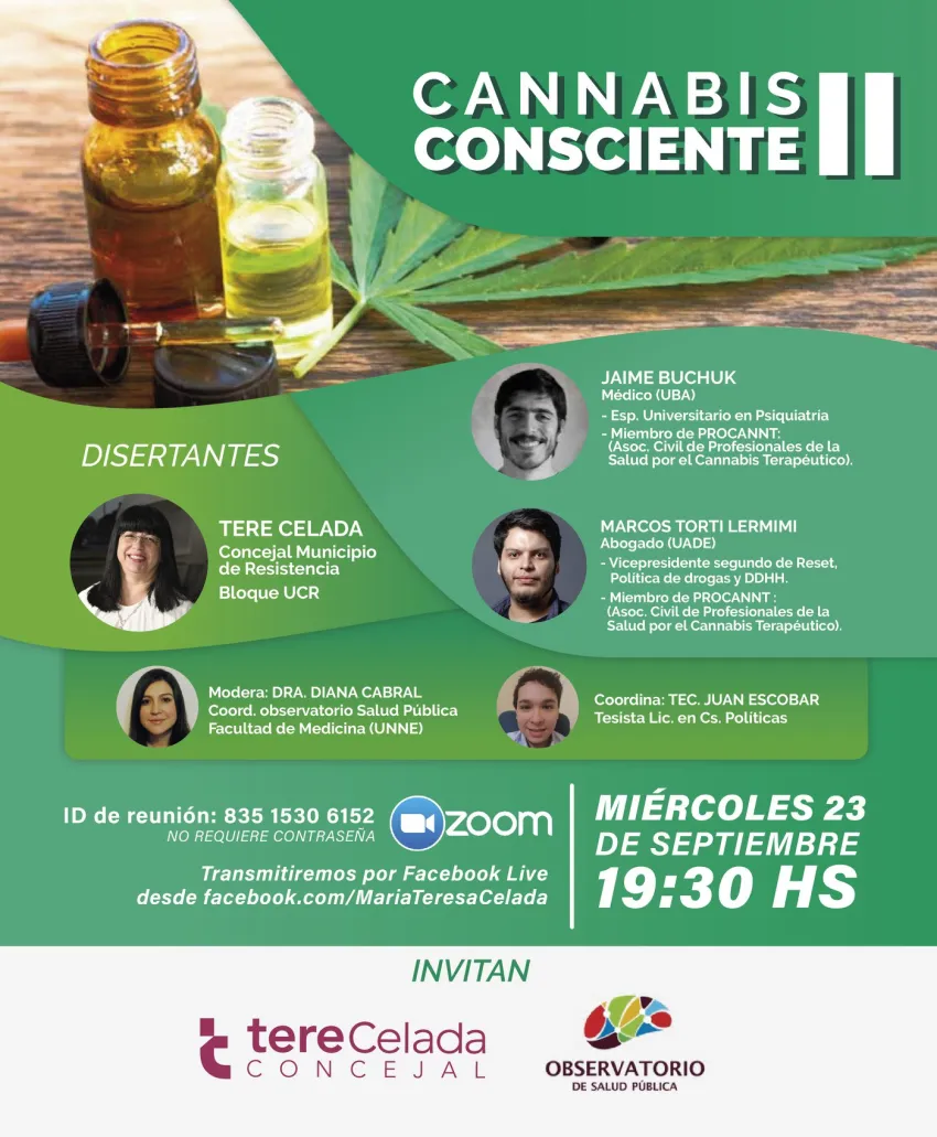 Al respecto la edil mencionó, "el encuentro anterior fue muy bien recibido y creemos que debemos seguir analizando esta temática y realizando aportes tendientes hacia una regulación del cannabis en el marco de la salud como uno de los derechos fundamentales del ser humano, por ello en esta oportunidad tendremos a un profesional en materia de salud y a otro en materia de derecho, pertenecientes a dos organizaciones con presencia nacional, PROCANNT y RESET."