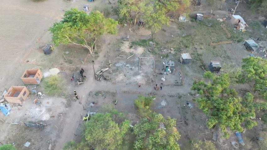 Trabajaron unos 150 policías, ayudante fiscal y retroexcavadoras para remover los cimientos de las tres construcciones. Al momento de avanzar hacia el lugar, un grupo de personas formó una barricada con cubiertas y las prendió fuego pretendiendo evitar el procedimiento.