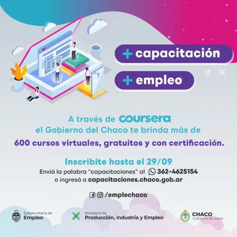 Los interesados e interesadas deberán ser mayores de 18 años y residir en la provincia, y podrán inscribirse hasta el 29 de septiembre a través de la plataforma online www.capacitaciones.chaco.gob.ar.