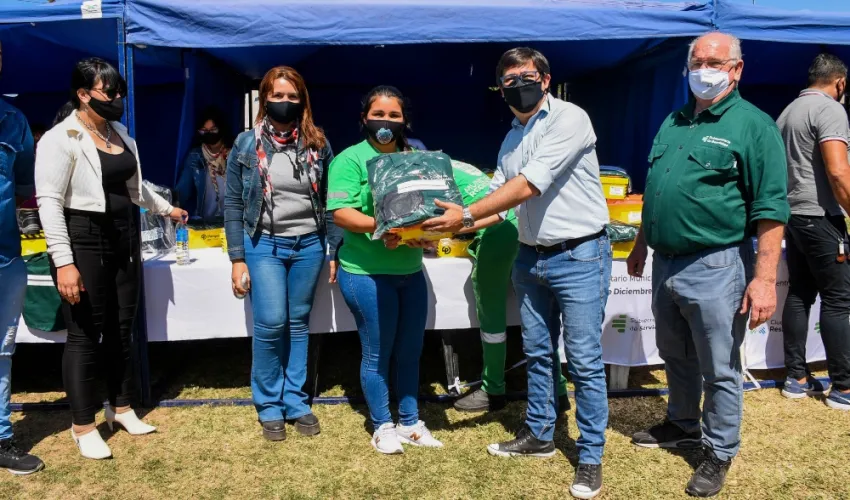Las entidades beneficiadas fueron los centros comunitarios de los barrios Villa Elisa, 13 de Diciembre, Villa Don Andrés, Palermo II, Güiraldes, 244 Viviendas, Mariano Moreno e Independencia. También fueron favorecidas las delegaciones del Mariano Moreno y Güiraldes. El equipo consta de camisa y pantalón de grafa, dos remeras, borceguíes, botas, guantes y gorra.