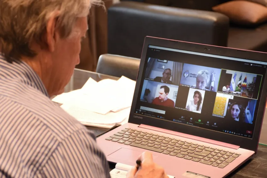 El presidente del Poder Legislativo, Hugo Sager junto con la vicegobernadora Analía Rach Quiroga, el titular del Interbloque Frente Chaqueño, Juan Manuel Pedrini y la secretaria de Derechos Humanos Silvana Pérez, mantuvieron este lunes una reunión virtual con la subsecretaria de Asuntos Parlamentarios de la Jefatura de Gabinete, Cecilia Gómez Miranda.