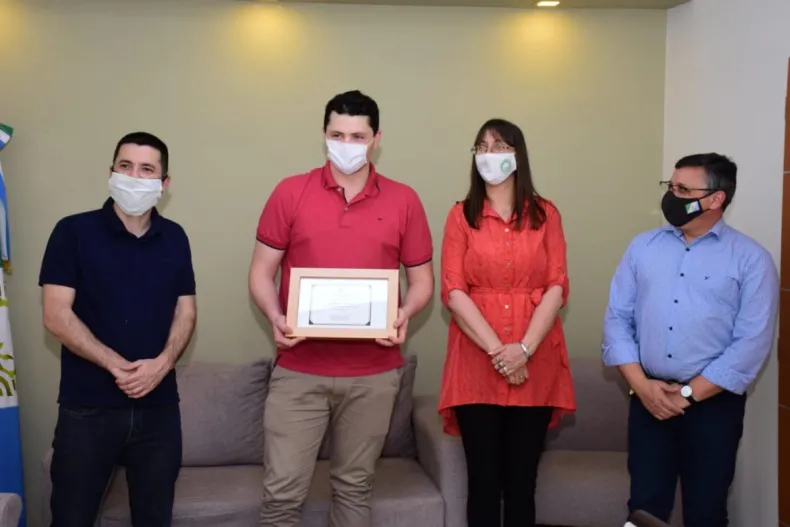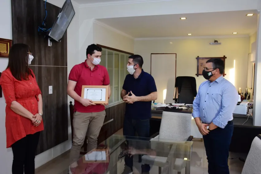 En la tarde del lunes, el intendente Bruno Cipolini junto al presidente del Concejo Deliberante, Pedro Egea y la directora de la Juventud, Verónica Wilcovski, recibió a Federico Collado, un joven saenzpeñense estudiante de ingeniería electrónica en la UTN y que junto a estudiantes de distintas universidades argentinas lanzarán por primera vez un proyecto propio al espacio luego de haber ganado el concurso Open Space destinado a personas menores de 25 años que contó con 300 participantes.