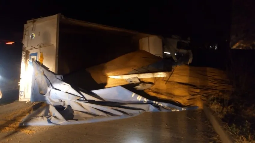 Esta madrugada, un camión que trasladaba maíz volcó en Ruta 16 kilómetro 23, Puerto Tirol, luego de que su conductor perdiera el control del rodado.
