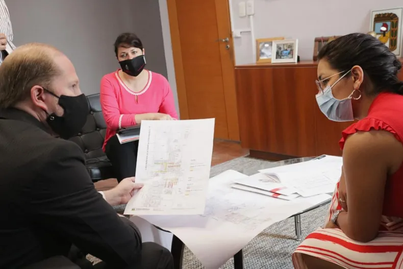 La jefa comunal Magda Ayala junto a la secretaria de gobierno municipal Paola Latyn, mantuvieron una reunión con el Ministro de Gobierno y Trabajo, Juan Manuel Chapo, para coordinar el inicio de la primera etapa de refacciones de veredas en Barranqueras, que hacen a la conexión de puntos claves como centros de salud, escuelas y jardines de infantes.Asimismo, también proyectaron la intervención de un espacio ubicado sobre avenida Edison que se transformará en una plazoleta verde, destinada a actividades de esparcimiento. Una vez finalizada la obra, los vecinos podrán recrearse "manteniendo las distancias correspondientes y cumpliendo con las medidas de higiene establecidas en el contexto de pandemia que estamos atravesando", sostuvo la intendente.En esa misma línea, también delinearon acciones de finalización de fachada en el Registro Civil de la localidad que fue refaccionado y en este momento se encuentra en etapa de finalización de terminaciones.