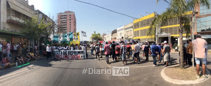 Este jueves a la mañana, varios movimientos sociales se manifestaron en la avenida 9 de Julio, frente a la Fiscalía, y estuvieron controlados por un operativo policial.