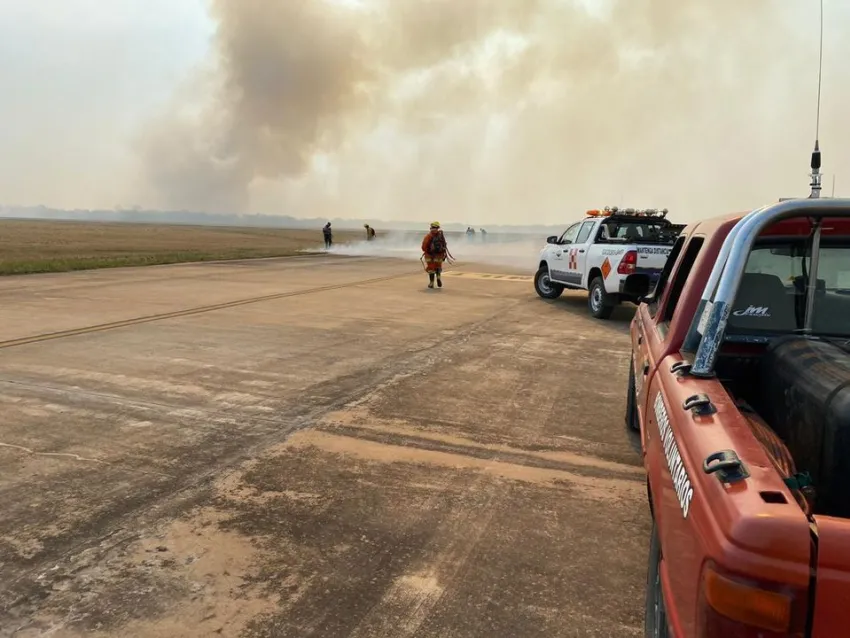 Por una quema de pastizales, el predio del aeropuerto se incendió y llegó a la pista de aterrizaje de la terminal.