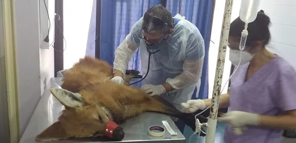 El estado de salud del Aguará Guazú: estaba deshidratado con unas pequeñas lesiones, pero estable