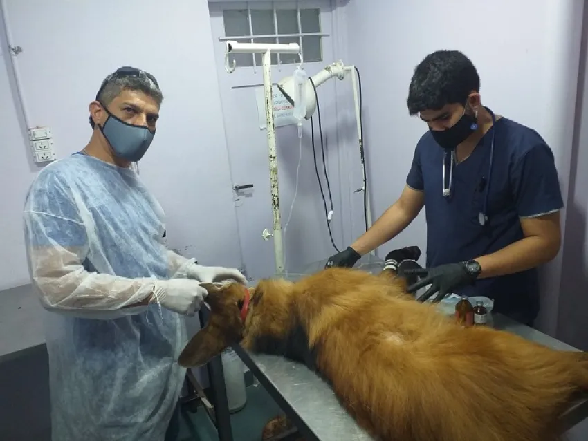 Desde la Clínica Veterinaria Integral, lugar donde atendieron al Aguará Guazú encontrado en alrededores del Shopping Sarmiento , informaron el estado de salud del animal. "Esta estable, bajo sedación, con vía permeable. Se extrajo sangre para análisis, orina, se hizo una ecografía y tenía unas lesiones menores de hace un par de días en los miembros", detalló el veterinario a cargo de la atención.