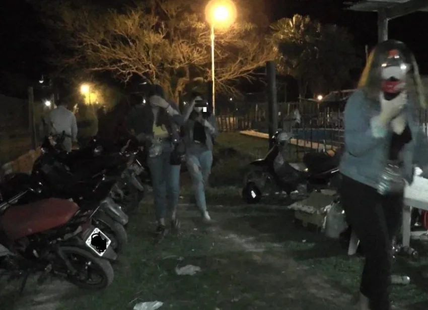 Alrededor de las 4 de la madrugada en Hermoso Campo, por la calle Vittolo al 200, divisaron a varias personas en un festejo. Identificaron a 6 mujeres y 7 hombres, todos mayores de edad. Se instruyeron las actuaciones judiciales pertinentes y se secuestró una motocicleta.