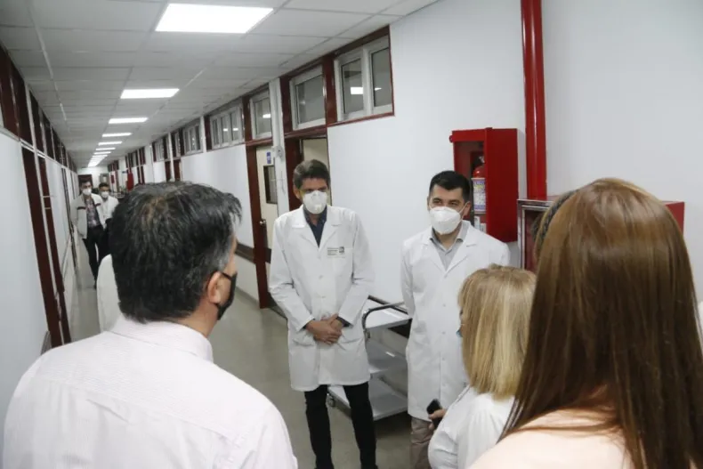 Junto al ministro de Infraestructura Juan Manuel Carreras, la ministra de Salud Pública Paola Benítez y a la directora y el codirector del hospital Nancy Trejo y Daniel Pascual, el mandatario inauguró el sector que cuenta con instalación de gases medicinales en Planta Alta; el Laboratorio de Hemoterapia y Hall de Acceso Principal. Además, el Quirófano 2 y Office de Salas de Parto. Además entregó mobiliario para el Hospital Modular, incluyendo despensero, cabinas, estantes y mesas.
