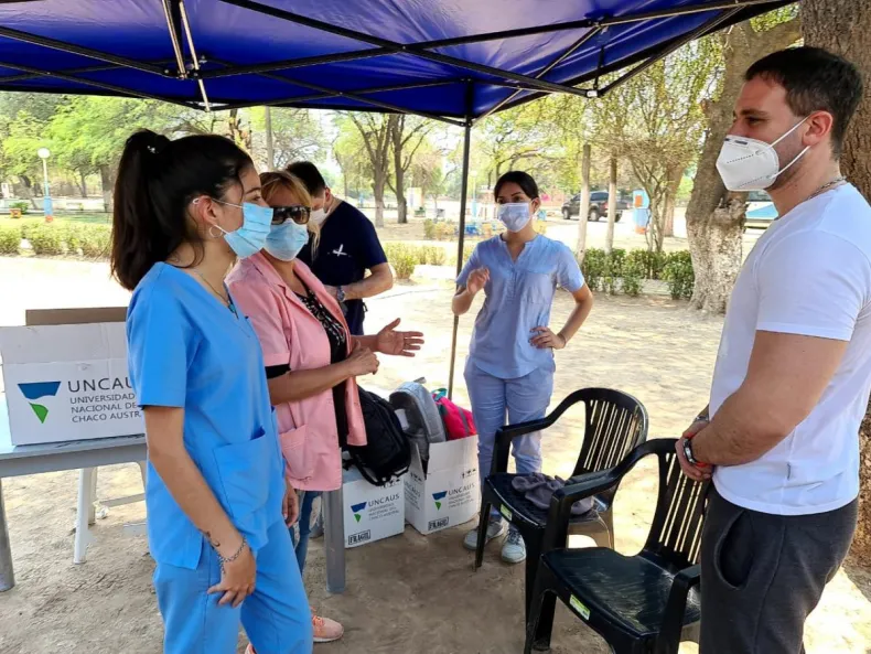 Las acciones que desarrolla allí la Universidad son: atención primaria de salud (APS), vacunaciones según calendario nacional, detección de casos positivos de COVID-19 mediante hisopados y ratrillaje por la zona para dialogar con los vecinos, atención médica y nutricional.