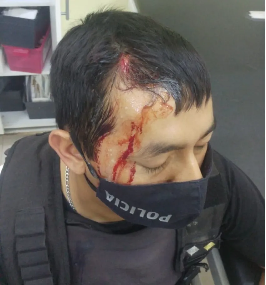 Al llegar al domicilio, un joven abrió la puerta y le tiro el ladrillo en la cabeza al policía.