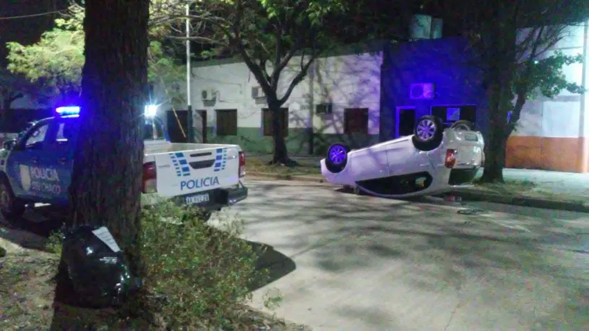 El vuelco se produjo en calle 19 y 8 del centro de Sáenz Peña, luego de un accidente de tránsito en el que el conductor de un vehículo marca Toyota modelo Etios color blanco volcó.