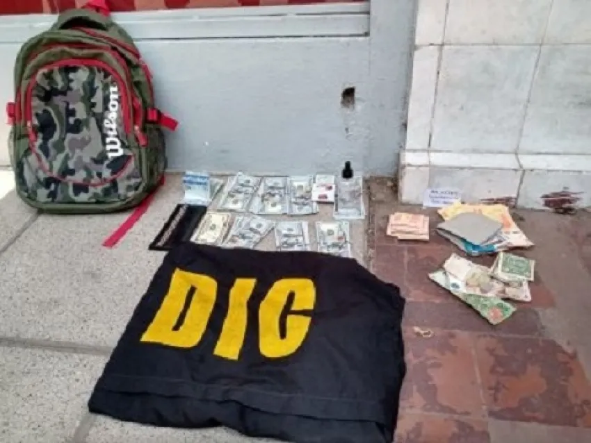 Cerca del mediodía, por calle Perón demoraron a un joven, que poseía las características físicas de uno de los supuestos autores. Fue identificado, y le solicitaron que exhiba lo que llevaba en su mochila. Al mostrar lo que llevaba dentro, hallaron gran cantidad de billetes, se contabilizó la suma de US$7.230; R$123 reales, y $23.625.
