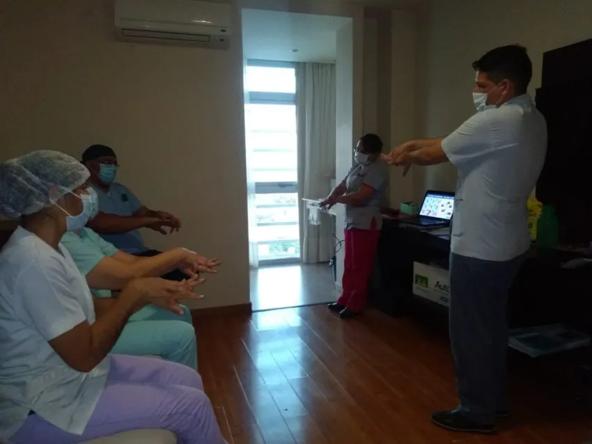 El ECCAP realiza auditorías en centros de salud, residencias y hogares de ancianos, y capacitaciones en normas de bioseguridad, correcto uso de elementos de protección personal y prevención de coronavirus. "La pandemia mundial por COVID-19 que nos afecta a todos nos recuerda diariamente de esta medida que tenemos que realizar para prevenir la transmisión o cortar la transmisión de este virus", recalcó.