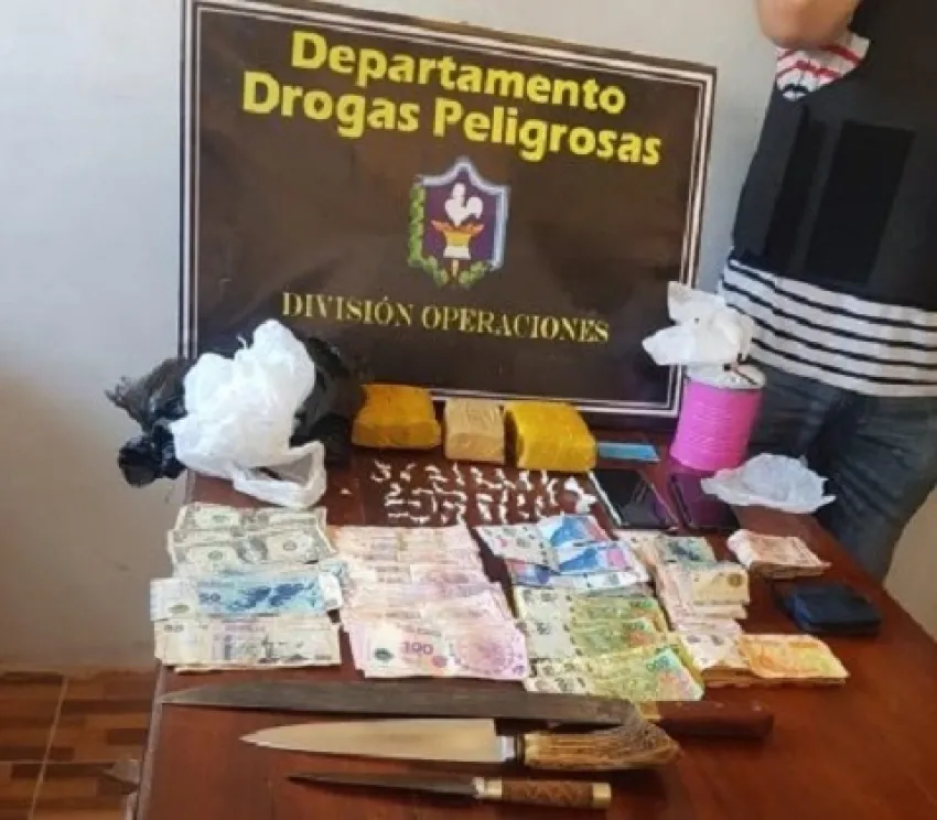 Tras realizar las inspecciones en el lugar, la Policía logró secuestrar tres trozos de marihuana con un peso de 990 gramos, 44 envoltorios con cocaína, un total de $12.520, tres cuchillos, un celular y un automóvil Honda City.