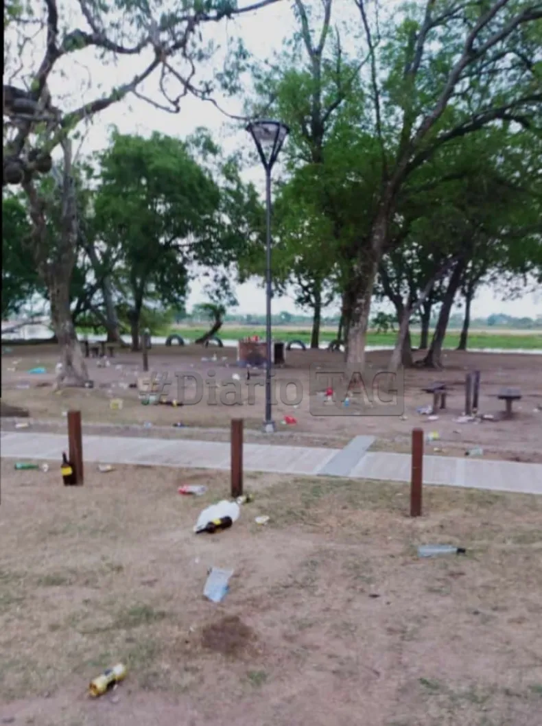 Al día siguiente, la postal fue vergonzosa. No conforme con organizar una fiesta, que en la actualidad puede poner en riesgo la salud pública y viola los decretos provinciales, dejaron la Laguna el Tigre hecha "una mugre". La postal generó repudio en redes sociales, ya que el espacio natural es una zona de recreación y un lugar en el que se trabajó mucho por su recuperación.