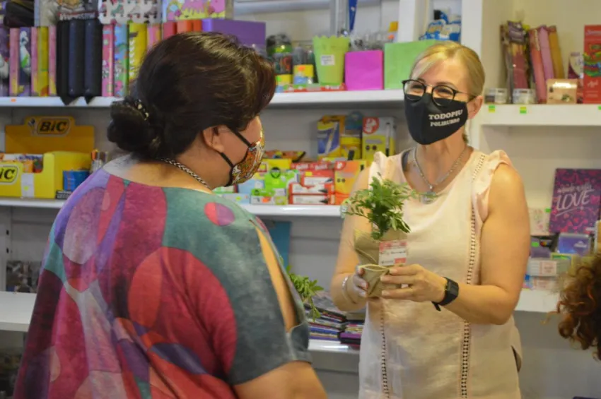 Con motivo de celebrarse el Día de la Madre, la jefa comunal junto al coordinador de Gabinete, Adrián Coronel, la secretaria de Gobierno Paola Latyn, el secretario de Hacienda Juan Zacarías, y la secretaria de Desarrollo Social de la municipalidad Viviana Ayala, hicieron entrega de plantines y saludaron a las madres comerciantes de toda la ciudad.