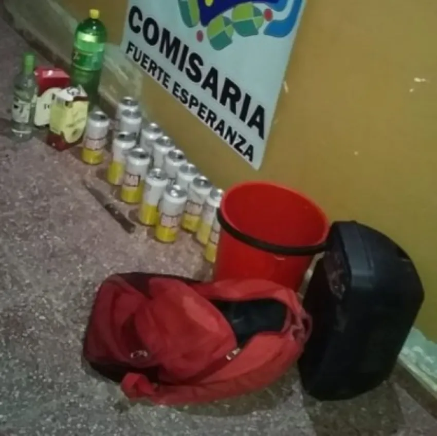 Un parlante, un balde con bebidas alcohólicas, varias botellas y latas y un cuchillo, es lo que secuestró la Policía en una fiesta clandestina que se realizó en cercanías de la Ruta Provincial 61 – Fuerte Esperanza-, a 500 metros de la pista de aviación.