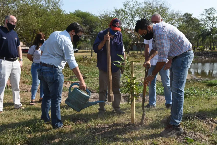 Matías Arce, subsecretario de Sistema Lacustre y Pulmones Verdes, explicó que se avanzó en esta iniciativa para colaborar con un pedido de la entidad, acompañándolos a través de este programa que lleva adelante el Municipio para arbolar la ciudad" y que se plantaron ejemplares de distintas especies alrededor de las canchas de juego, "para que en un futuro los chicos que acudan al club puedan servirse de los frutos que den estos árboles y disfrutar de su sombra".