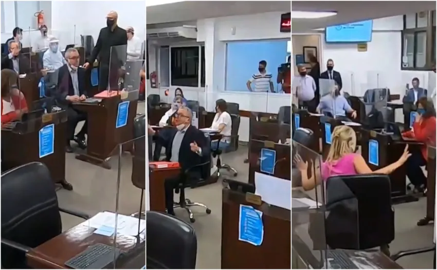 "Desde el interbloque queremos sesionar 15 minutos para dar respuesta a esto, agradeciéndoles a los trabajadores", se lo escucha decir a Bergia. En respuesta, Parra Moreno dijo "contestando medicamente a lo que refiere el diputado Bergia..." hasta que fue interrumpido por una diputada que le aclaró "esto no es un club de amigo" y por la notable molestia de Pedrini que exigió "¡Abra la sesión!" y luego preguntó "¿Quién se cree que es?".