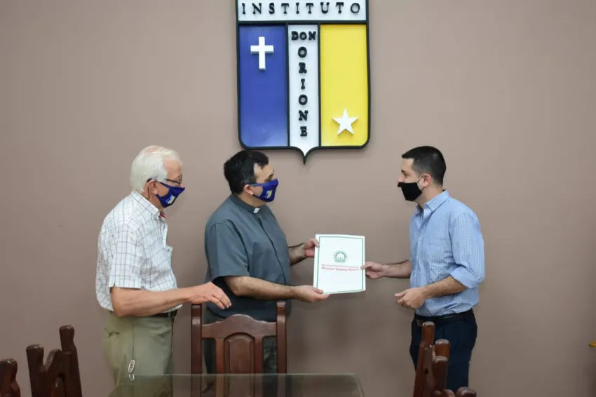En la mañana del jueves el intendente Bruno Cipolini, visitó las instalaciones de la U.E.G.P N°55 Don Orione, donde hizo entrega de la Resolución N° 775/20 declarando de Interés Municipal el octogésimo aniversario de la bendición de la Piedra Fundamental del Instituto Don Orione.