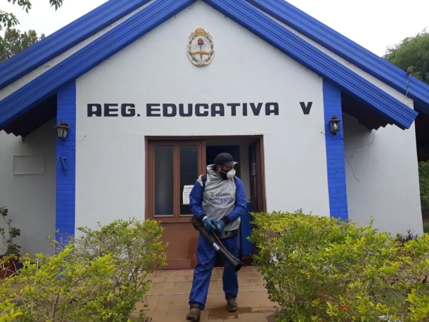 Este 26 de octubre, la Subsecretaría de Relaciones con la Comunidad de Juan José Castelli realizó tareas de sanitización en las oficinas de la Regional Educativa V de la localidad, como parte del trabajo preventivo y de saneamiento de las instituciones públicas.