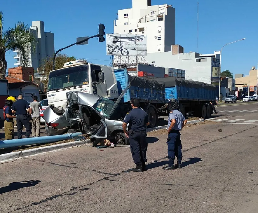 En la siesta de este martes 27 de octubre, alrededor de las 15:30, un fuerte accidente se dio en la provincia de Corrientes, en la avenida 3 de Abril y calle Entre Ríos, en cercanías al acceso del puente Chaco-Corrientes, donde un camión embistió a un auto que realizó una peligrosa maniobra. El conductor del auto fue trasladado con lesiones leves.
