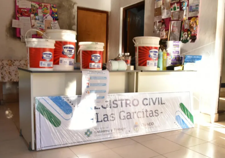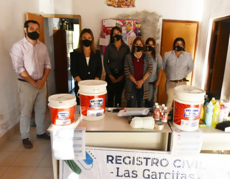El Ministerio de Gobierno y Trabajo, mediante la Subsecretaría de Asuntos Registrales, entregó en las oficinas registrales de Las Garcitas múltiples insumos necesarios para optimizar su trabajo interno y mejorar la atención a los vecinos, donde se destacan distintos elementos para resguardo y cuidado de la higiene y medidas de bioseguridad.