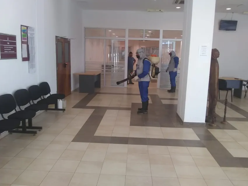 Este 27 de octubre, la Subsecretaría de Relaciones con la Comunidad procedió a realizar tareas de sanitización en el edificio del Poder Judicial de Castelli, como parte del trabajo preventivo y de saneamiento de instituciones públicas.