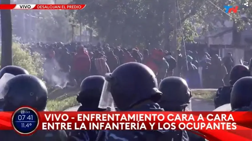 Los usurpadores afirmaron que los agentes dispararon balas de goma y gases lacrimógenos. Rosalía, una de las delegadas de la toma, sostuvo: "¿Qué corazón tienen para sacarnos así? Estamos desesperados, es una situación muy difícil, el Gobierno no hace nada", planteó en diálogo con radio Rivadavia. Miguel, otro de los ocupantes, sostuvo: "Están con camionetas, cuatriciclos, con helicópteros. Es una angustia terrible ver todo esto y que el Gobierno se haya negado a encontrar una solución".