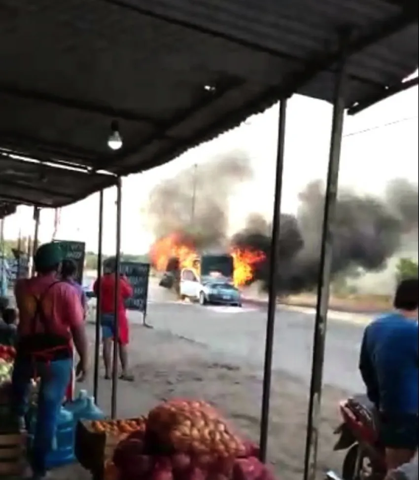 En un video que circuló por las redes sociales, se puede ver al vehículo totalmente prendido fuego sin ocupantes en su interior.