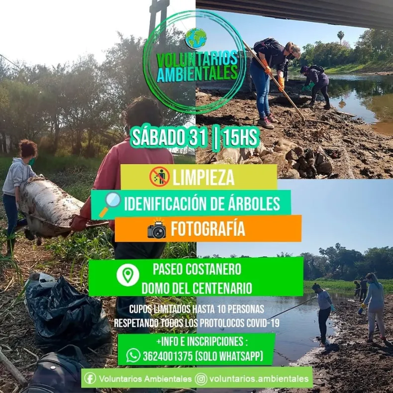 La asociación Voluntarios Ambientales realizará actividades de limpieza, identificación de árboles y fotografía en el río Negro, a la altura del Paseo Costanero y del Domo del Centenario.